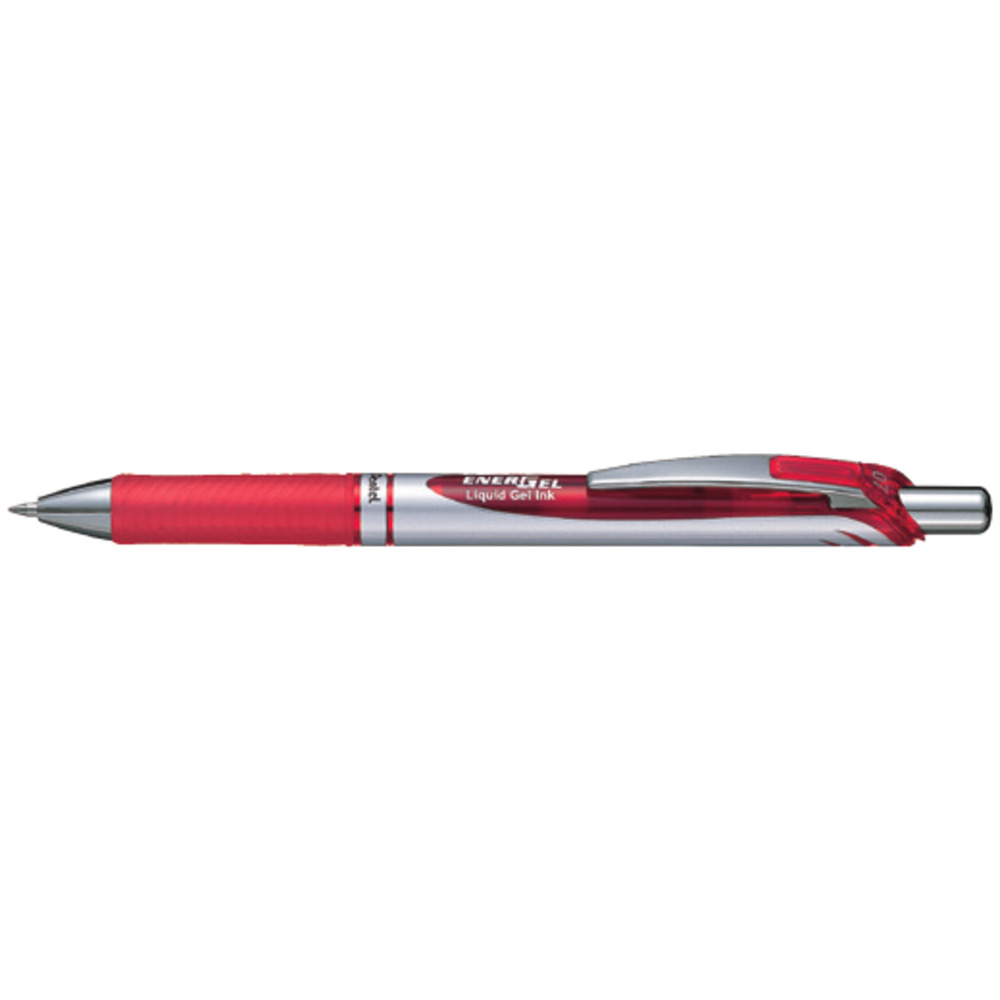 Penna Pentel con meccanismo a scatto e grip in gomma. Punta conica da 0,7 mm ideale per mancini, offre tratto preciso (0,35 mm) senza sbavature e asciugatura rapida.