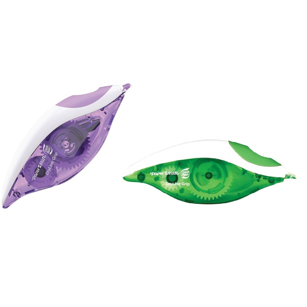 Correttore Dryline Grip di Paper Mate a nastro 5 mm x 8,5 mt, forma ergonomica e grip in gomma.