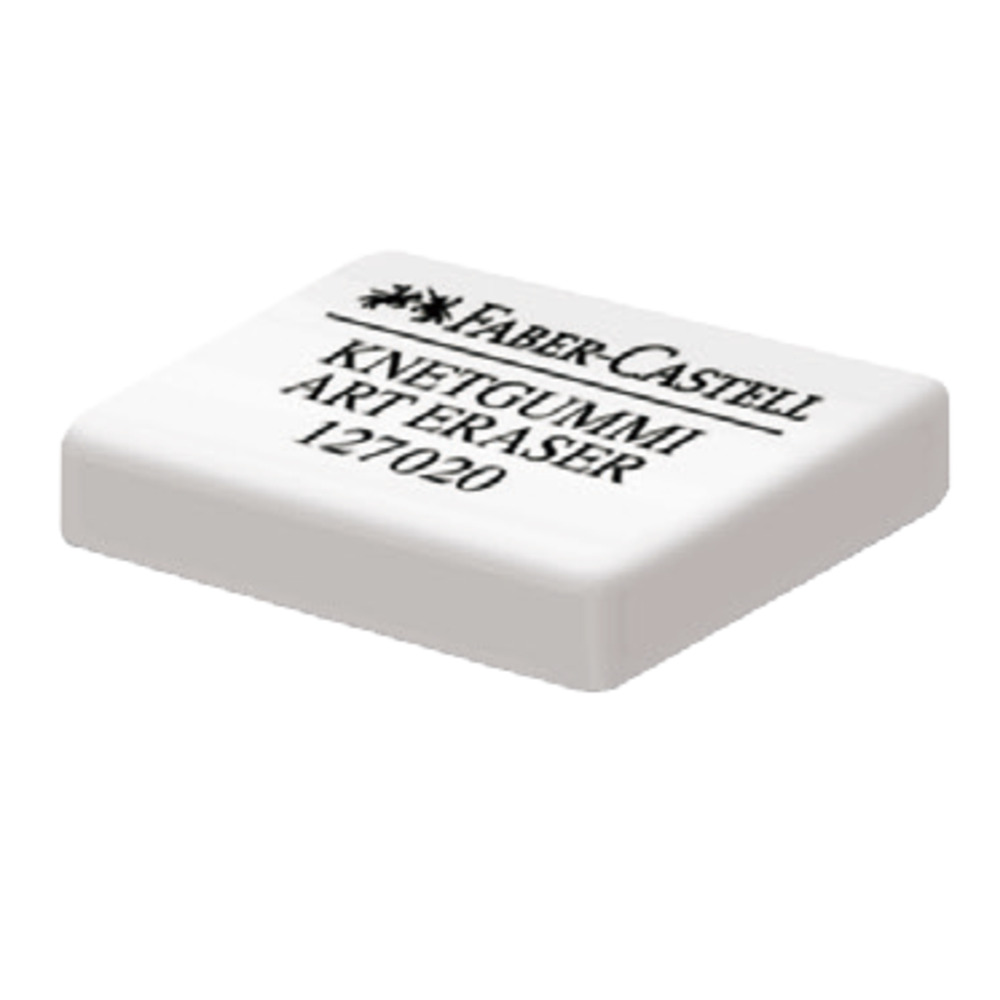 Gomma pane Faber-Castell, quadrangolare, è ideale per rimuovere segni di matita, carboncino e pulire lucidi. è malleabile e assorbente.