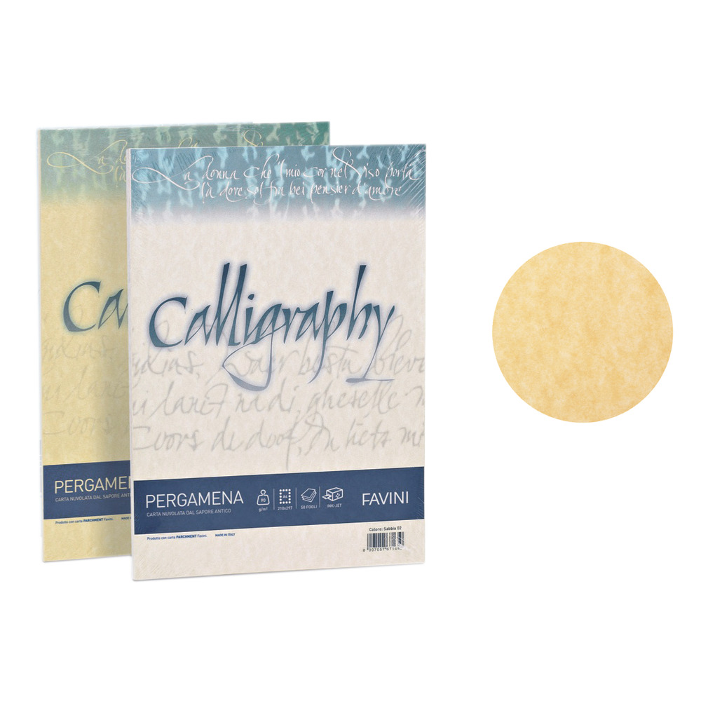 Carte di prestigio Calligraphy di Favini: pergamena A4 crema da 90gr. Ideale per comunicazioni aziendali e personali, stampabile con laser, inkjet e fotocopiatori. Confezione da 50 fogli.