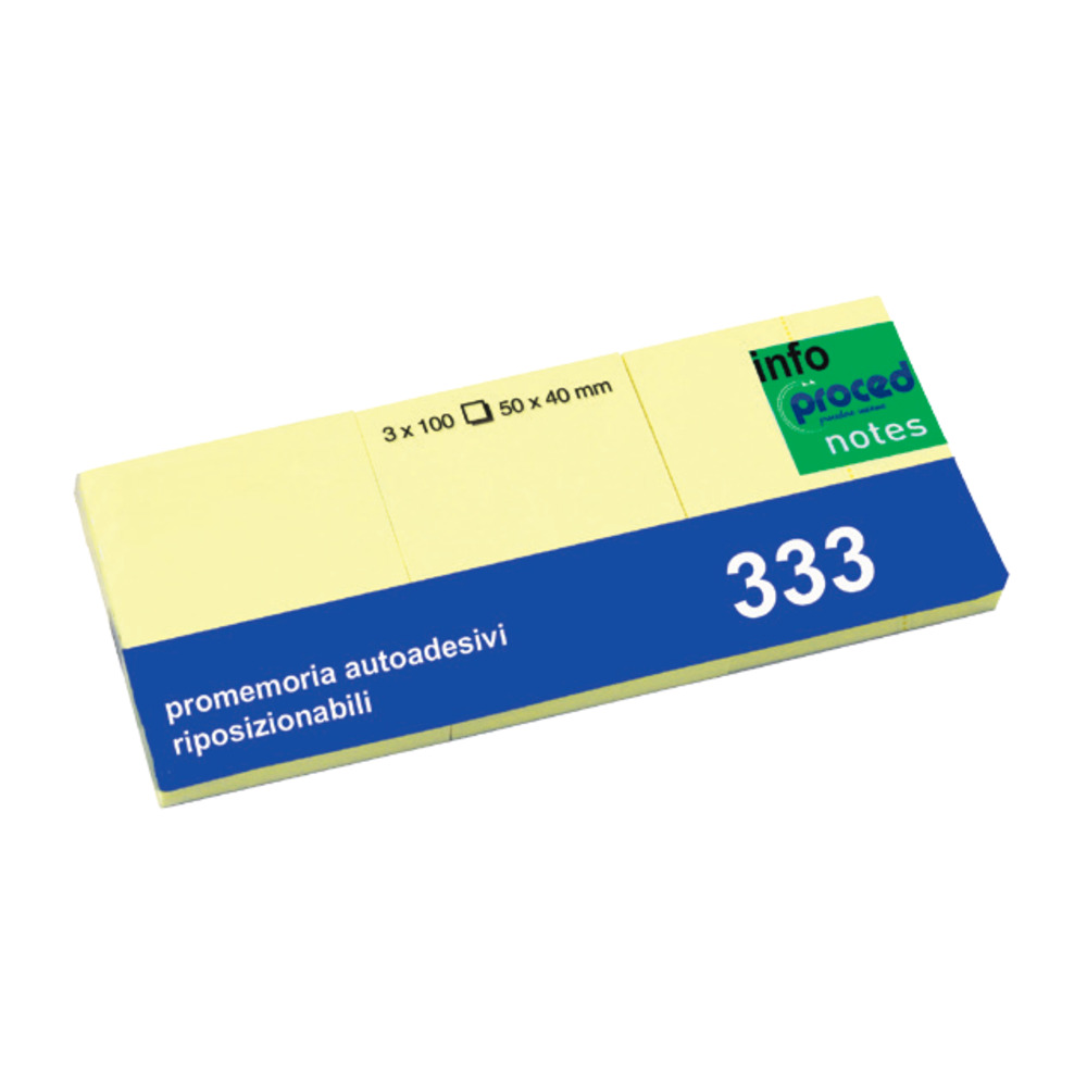 Foglietti autoadesivi riposizionalbili a marchio Proced / Diem di colore giallo.