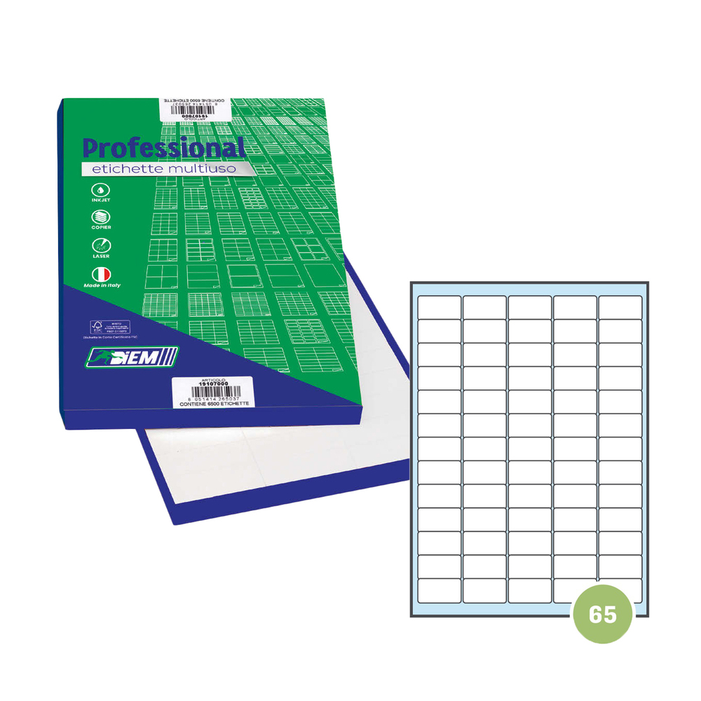 Etichette autoadesive su fogli A4 in confezioni da 100 fogli, adesivo acrilico permanente.