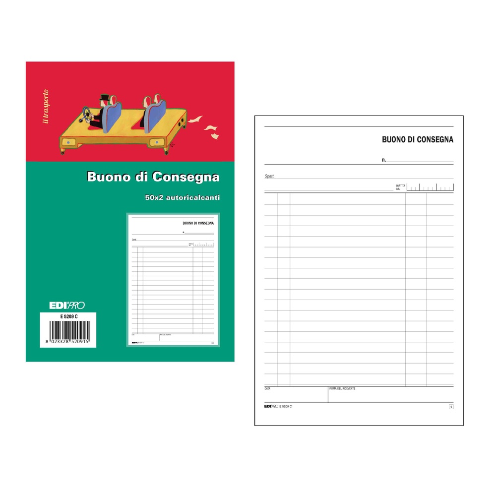 I blocchi buoni Edipro, con codice E5209C, presentano un formato verticale di 14,8x22 cm. Sono composti da 50x2 facciate in carta chimica, ideali per le consegne.