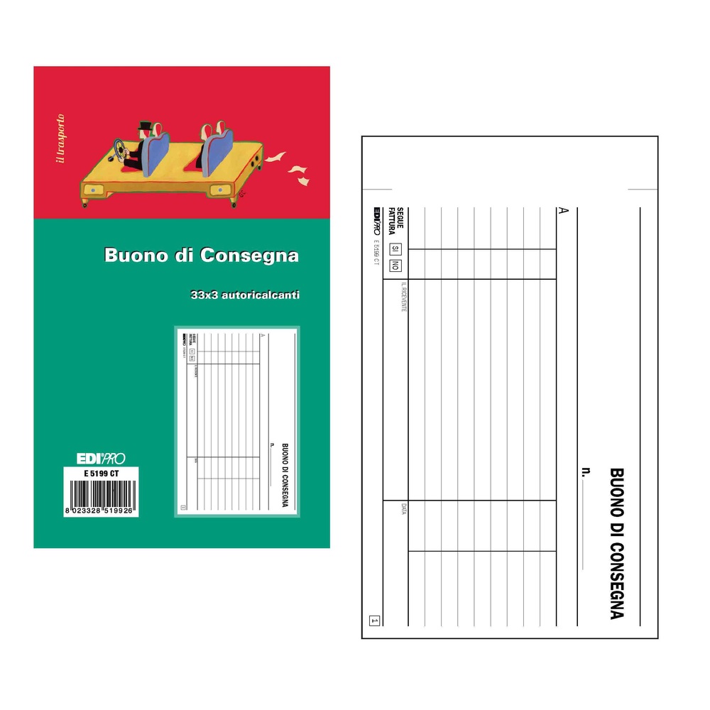 Blocco di buoni precompilati Edipro, codice E5199CT. Il formato è di 17x9,9 cm e include 33 copie in carta chimica.