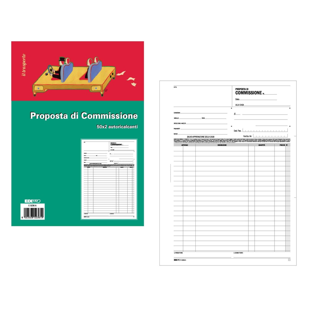 Blocco commissioni Edipro, con codice E5236A, è ideale per la scrittura con penne chimiche. Il formato è A4 e contiene 50 fogli da 2 copie ciascuno, perfetti per la tua attività.