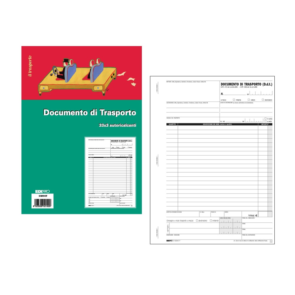 Blocco DDT mittente/destinatario/vettore di Edipro con copie carta chimica.