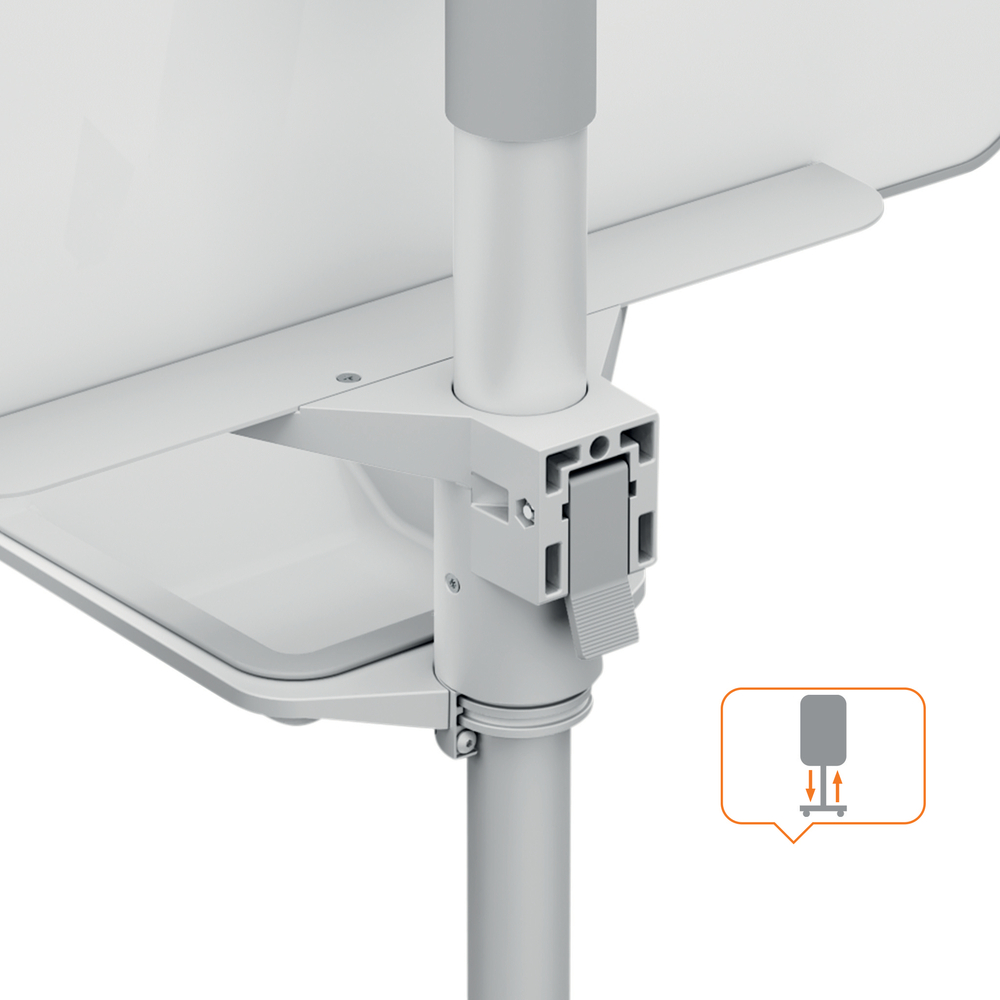 Lavagna Nobo 70x100 cm portablocco Move & Meet orietabile a fogli mobili con semplice meccanismo di regolazione in altezza che può essere facilmente spostato da una postazione all’altra.