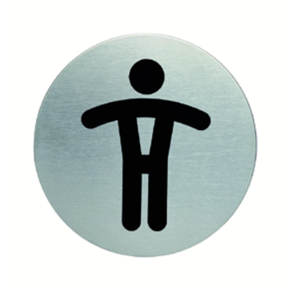 Pittogrammi circolari e sagomati in acciaio spazzolato di alta qualità.