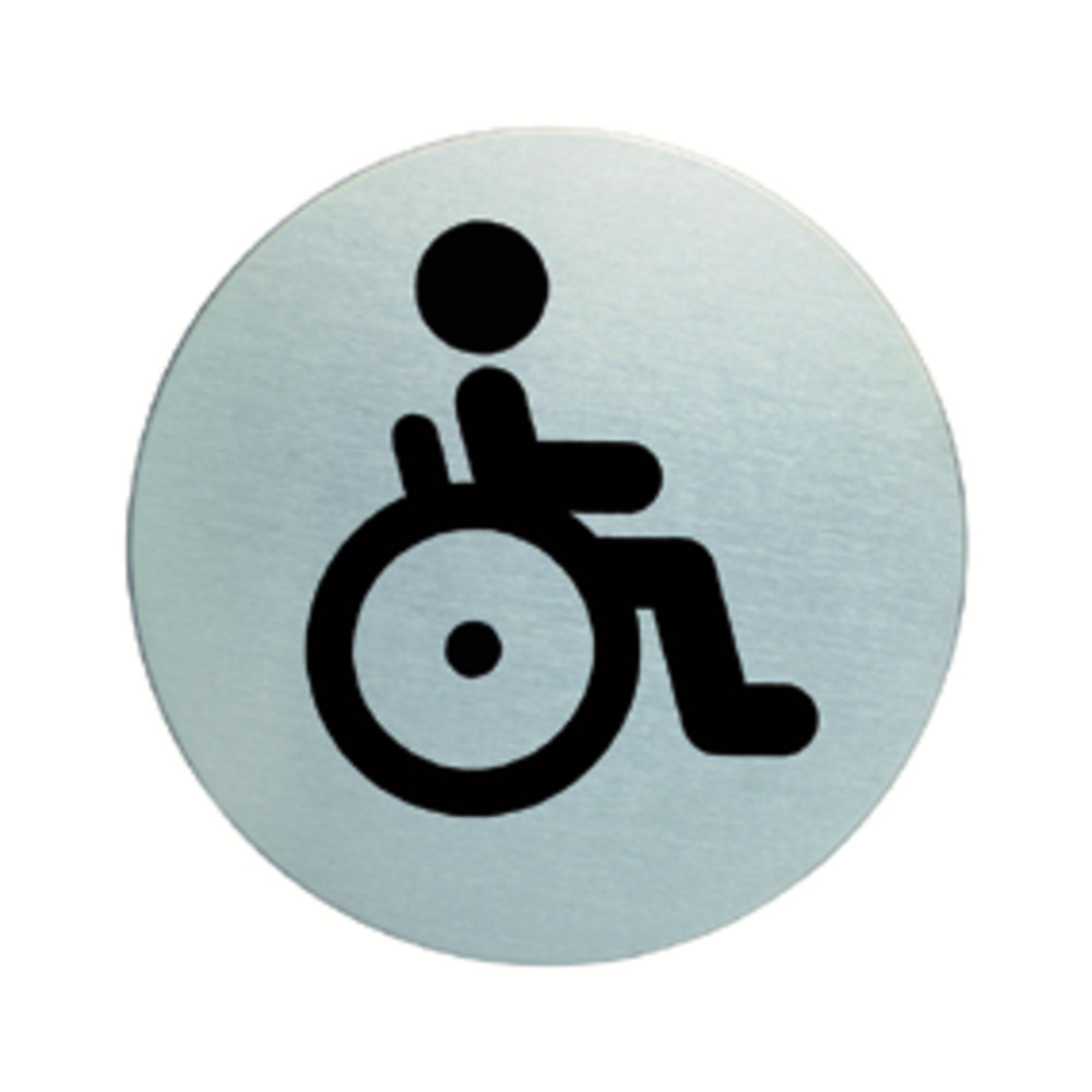 Pittogrammi circolari e sagomati in acciaio spazzolato di alta qualità.