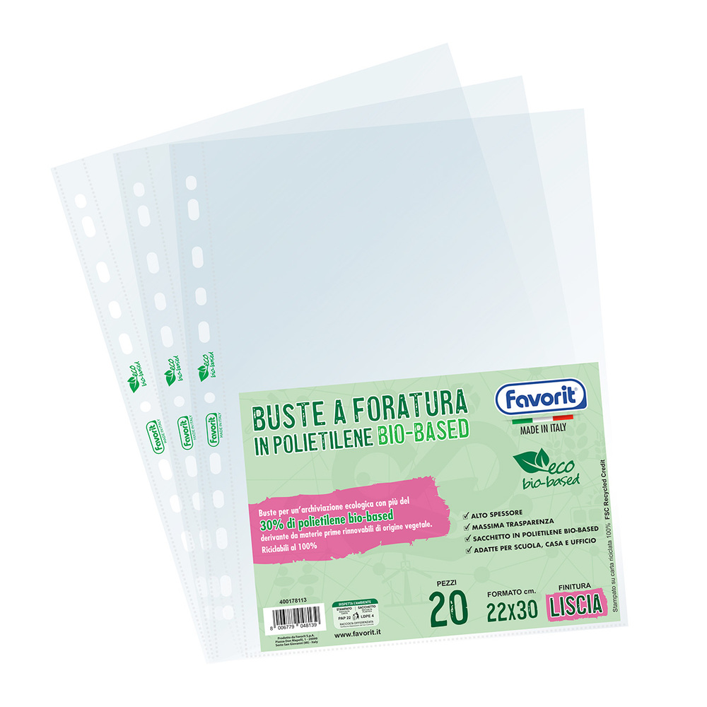 Realizzate in polietilene BIO-BASED, derivante da materie prime rinnovabili di origine vegetale, riciclabili al 100%, per un’archiviazione ecologica!