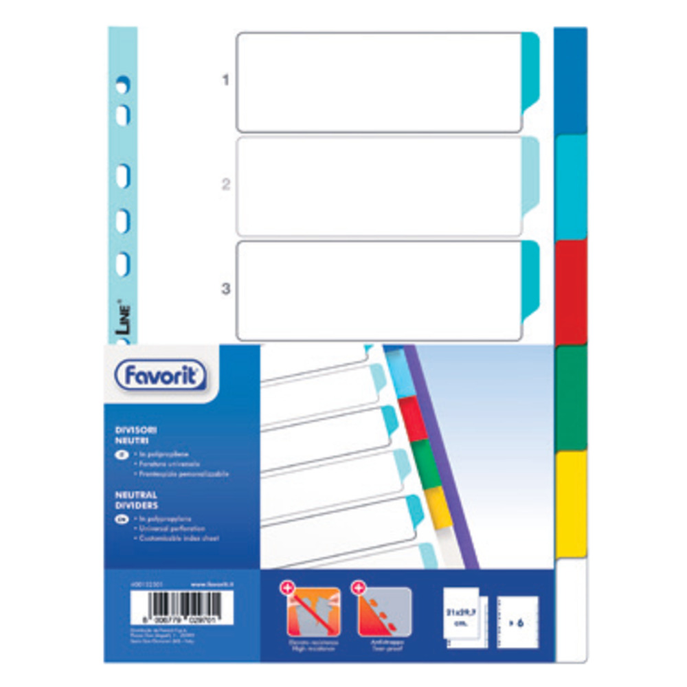 Realizzati in polipropilene a 6 colori, con foratura universale.