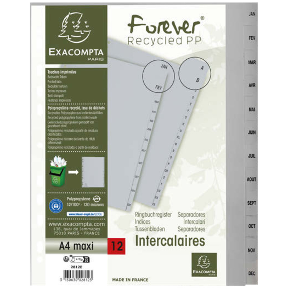 Divisori polipropilene riciclato Exacompta intercalari per registratori ad anelli, realizzati in PPL riciclato 120 micron, proveniente da scarti di plastica.