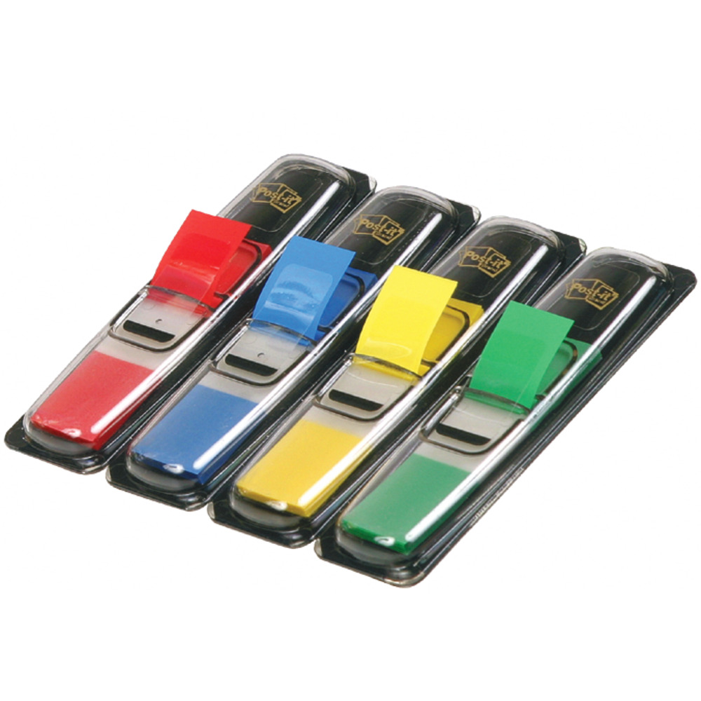 Segnapagina Post-it® Index Mini, pratico e compatto. Il blister contiene 140 segnalapagine, con 35 unità per ciascuno dei quattro colori disponibili: rosso, blu, giallo e verde.