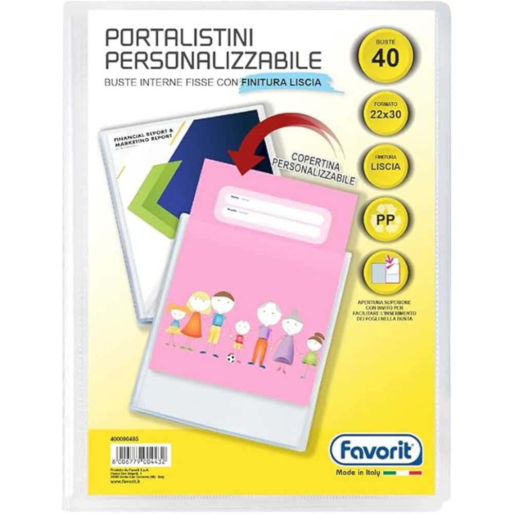 Portalistini Favorit personalizzabili lisci portalistini realizzati in polipropilene con copertina flessibile e trasparente con tasca per la personalizzazione.