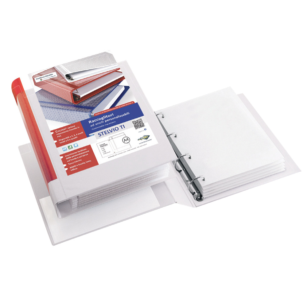Raccoglitori personalizzabili STELVIO TI in Colpan (cartone rivestito in PVC) con meccanismo ad anelli e tasca interna.