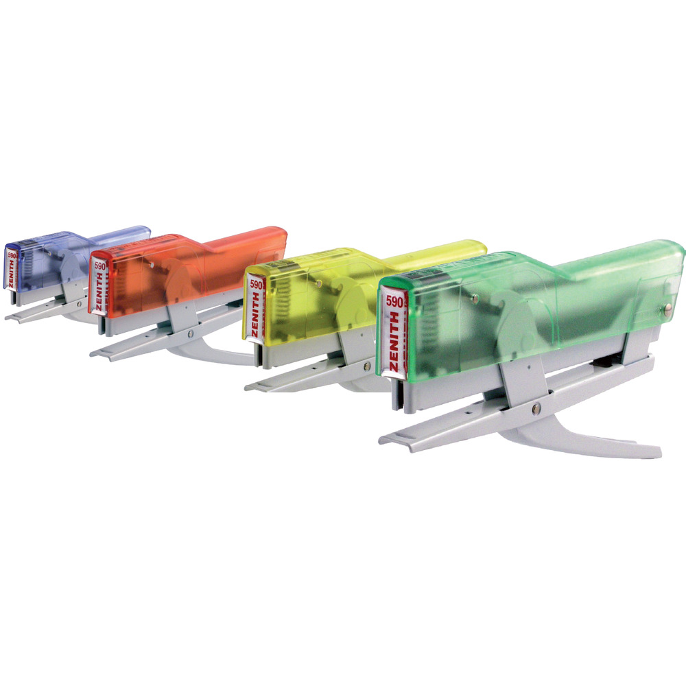 Cucitrice Zenith a Pinza 590 Fun è leggera e pratica. Carica i punti frontalmente, con una capacità massima di 200. Il corpo metallico e il cappuccio in plastica ABS colorato garantiscono robustezza e vivacità.