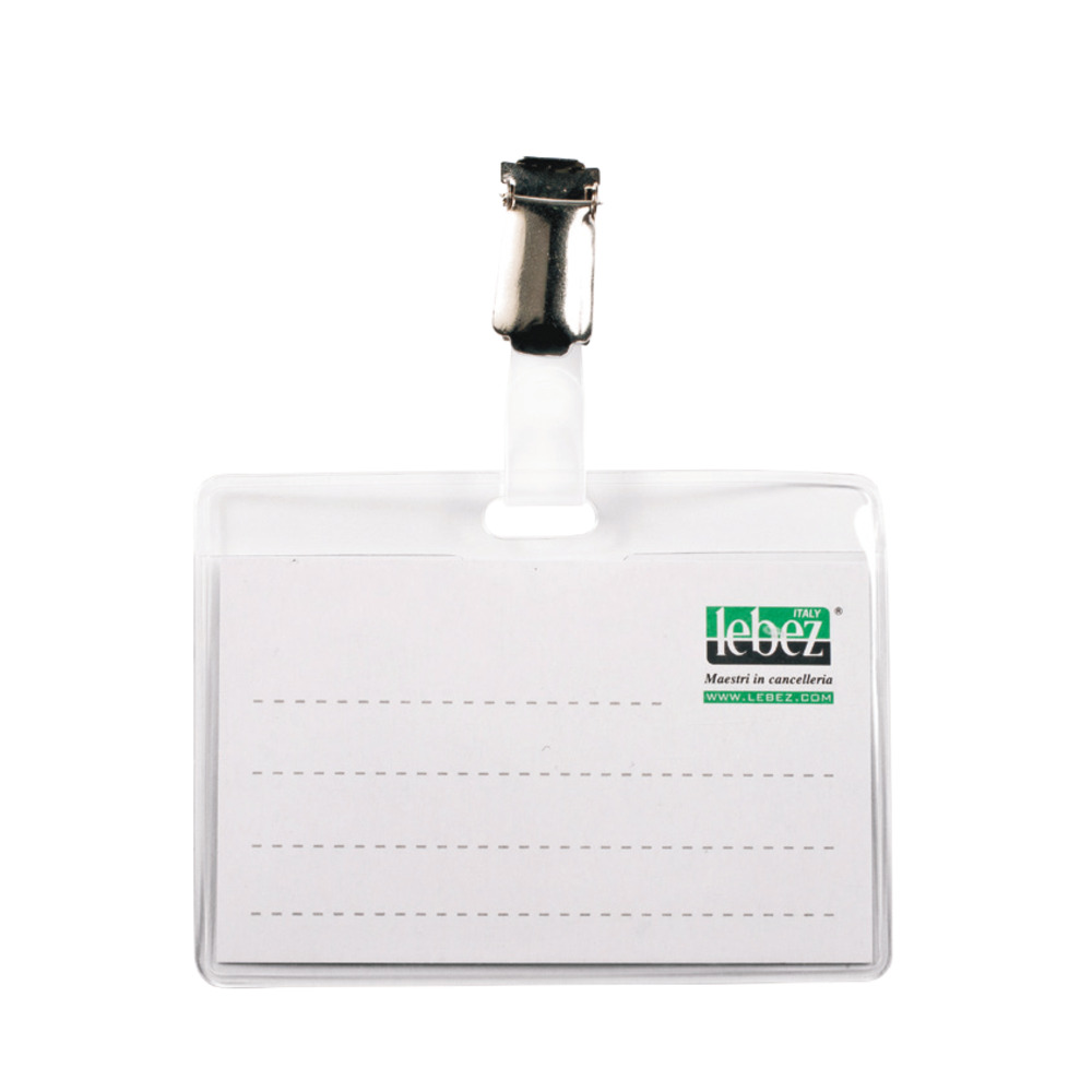 Portabadge Labez con clip in metallo, l'inserimento del cartellino ha l'apertura laterale.