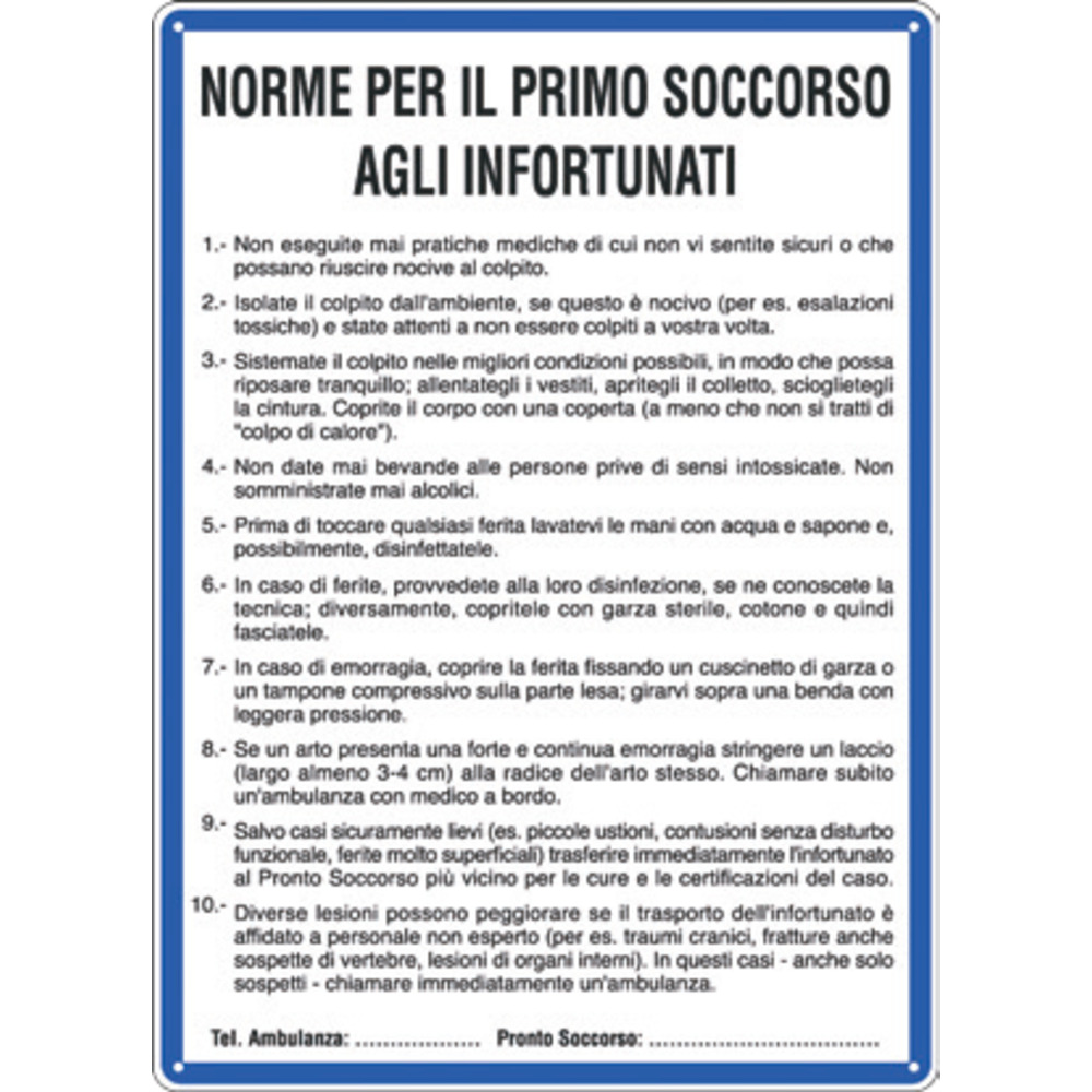 Cartelli "Norme di primo soccorso infortunati"