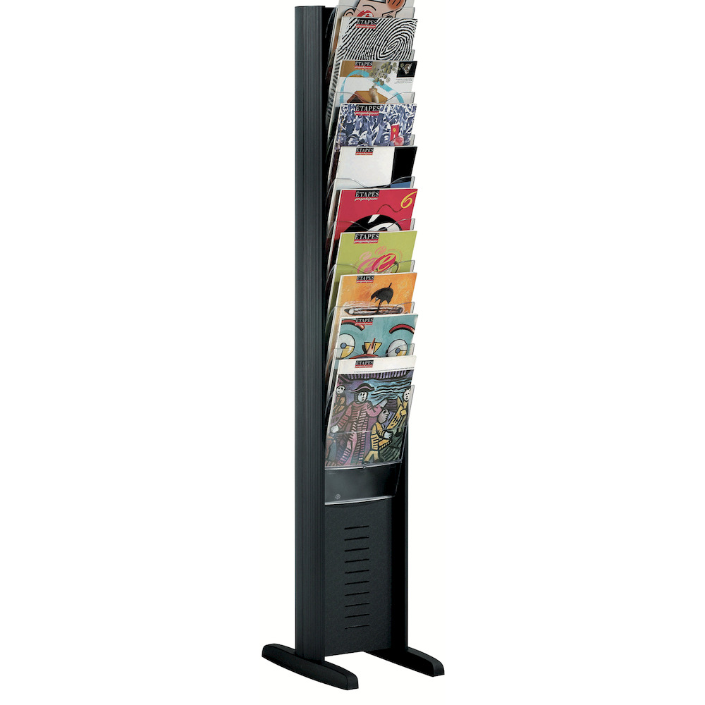 Portariviste con struttura in metallo rivestito in plastica antigraffio e anticorrosione.