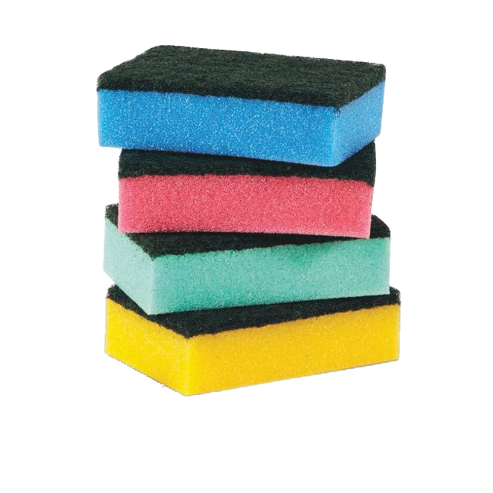 Spugna sintetica multicolor con lato abrasivo per diversificare la destinazione d’uso.