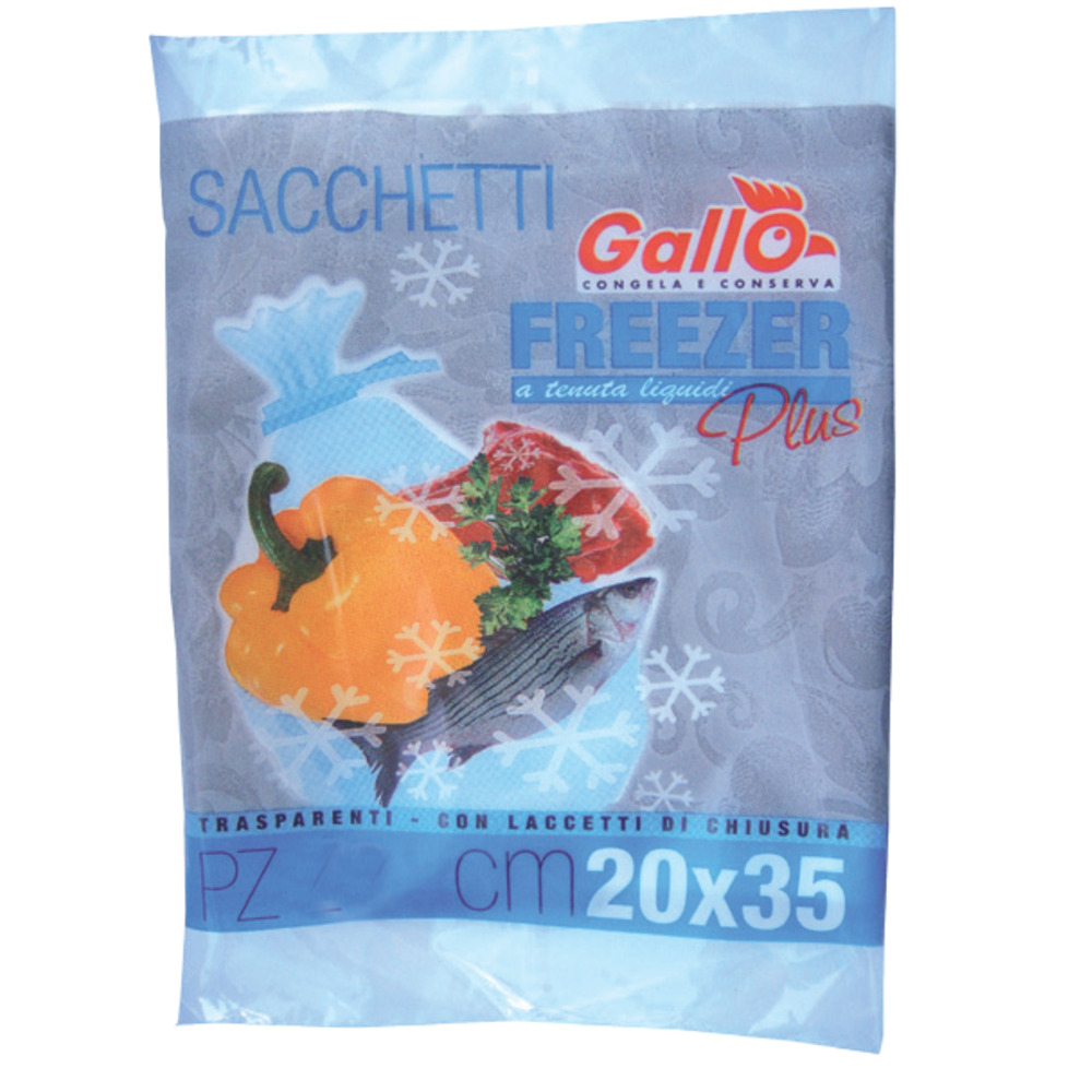 Sacchetti per alimenti ideali in frigorifero. Misurano 20x35 cm e sono disponibili in confezioni da 40 pezzi.