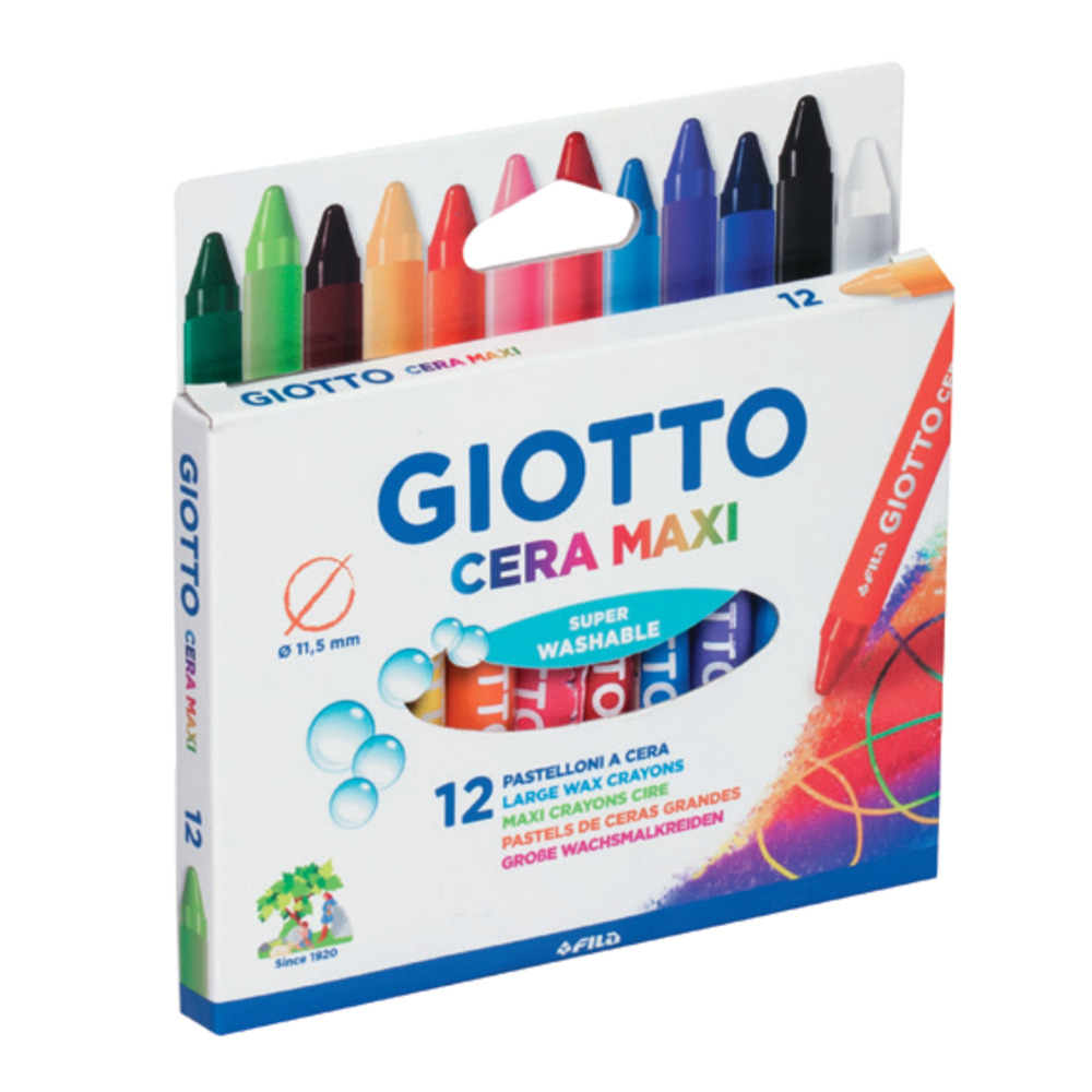 Pastelli a cera Giotto tondi i colori lavabili dalla maggior parte dei tessuti e superfici.