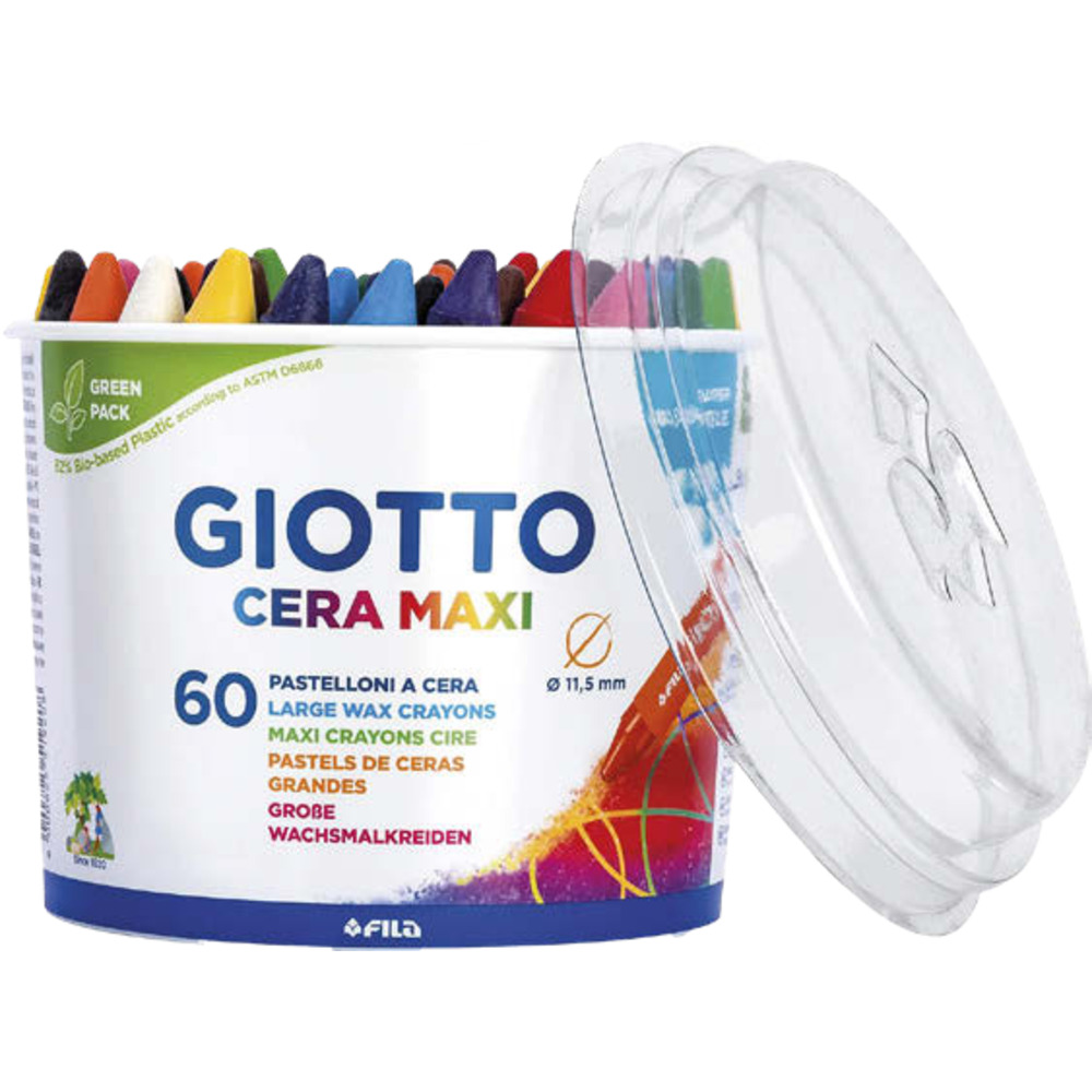 Pastelli a cera Giotto tondi i colori lavabili dalla maggior parte dei tessuti e superfici.