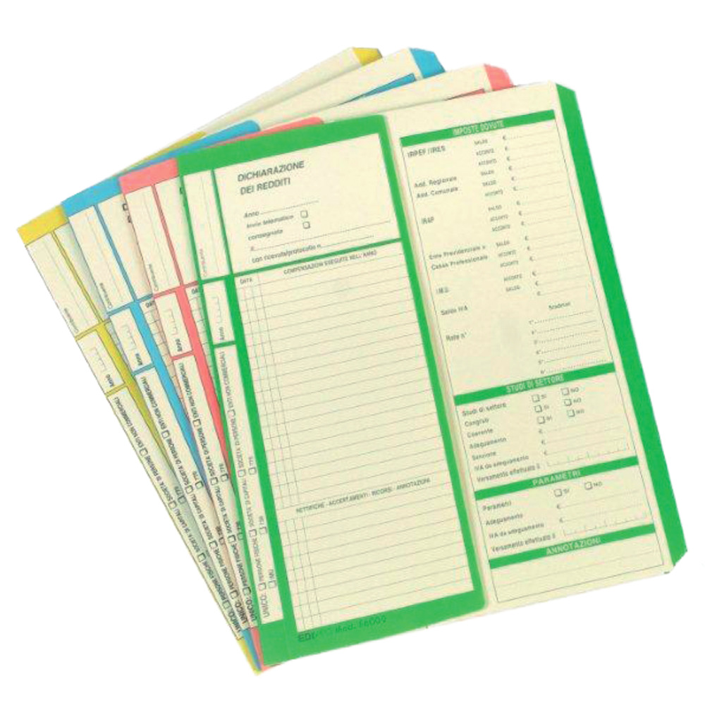 Cartella conservazione dichiarazioni di Edipro dal colore giallo.