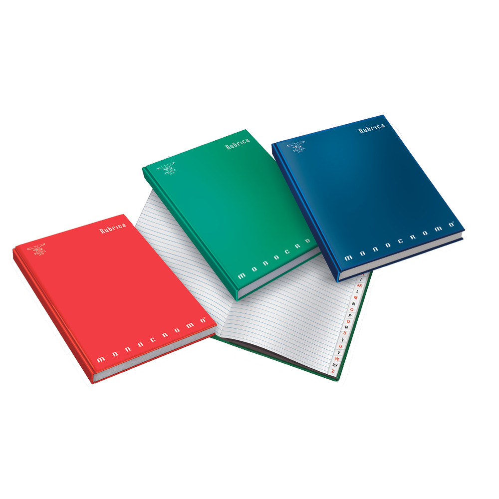 Rubrica Pigna con copertina cartonata, ideale per organizzare indirizzi e numeri. Dispone di 22 tacche e carta da 80 gr. Disponibile in 3 colori assortiti.