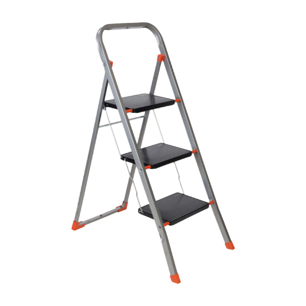 Sgabello completamente in acciaio in tubolare 20x15 mm con 3 gradini in acciaio 20x30 cm.