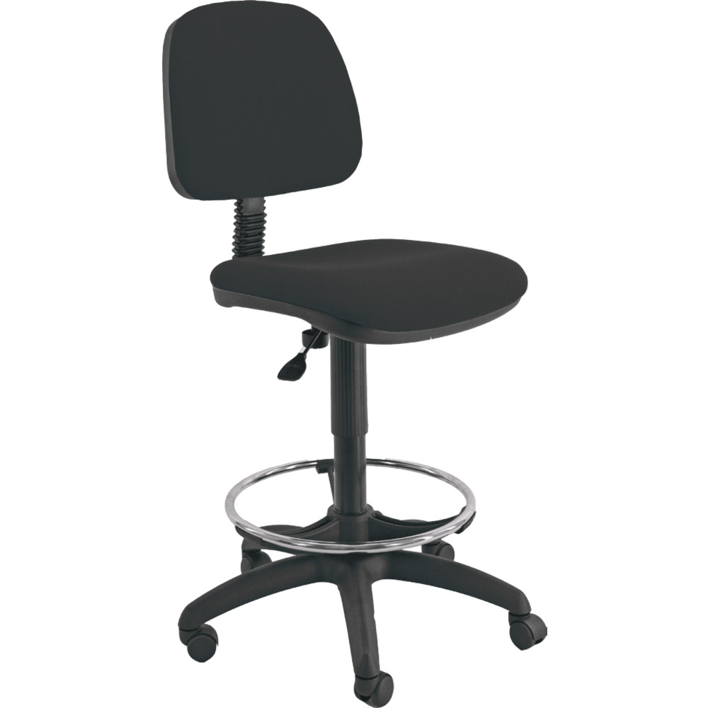 Sgabello tecnico con poggiapiedi in alluminio e con schienale regolabile in altezza e profondità.