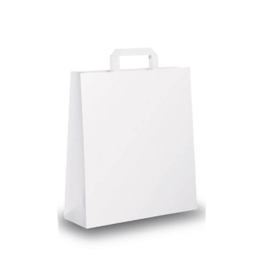 Shoppers in carta kraft bianco con maniglie piattina.