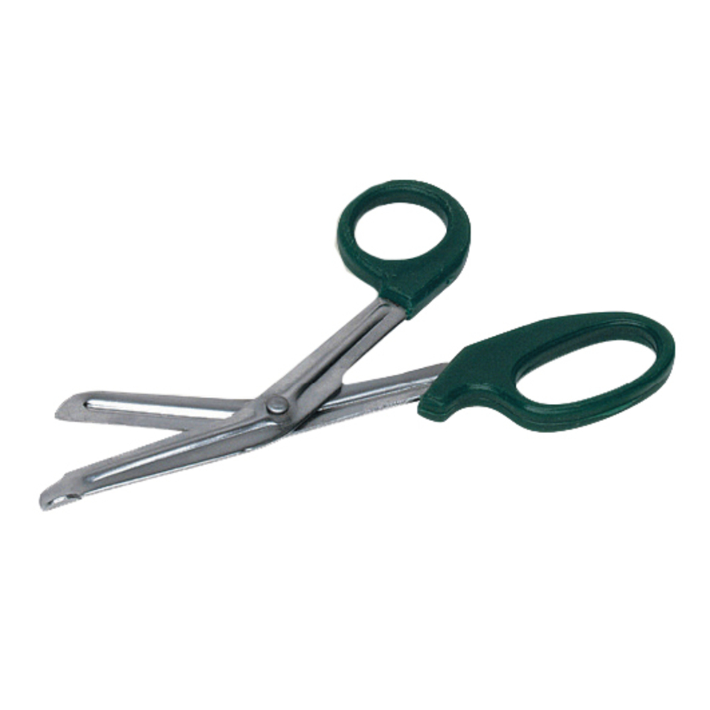 Forbici tagliabendaggi in acciaio inox, lunghe 14,5 cm. Hanno manici in plastica e sono autoclavabili, conformi alla norma DIN 58279-A145.