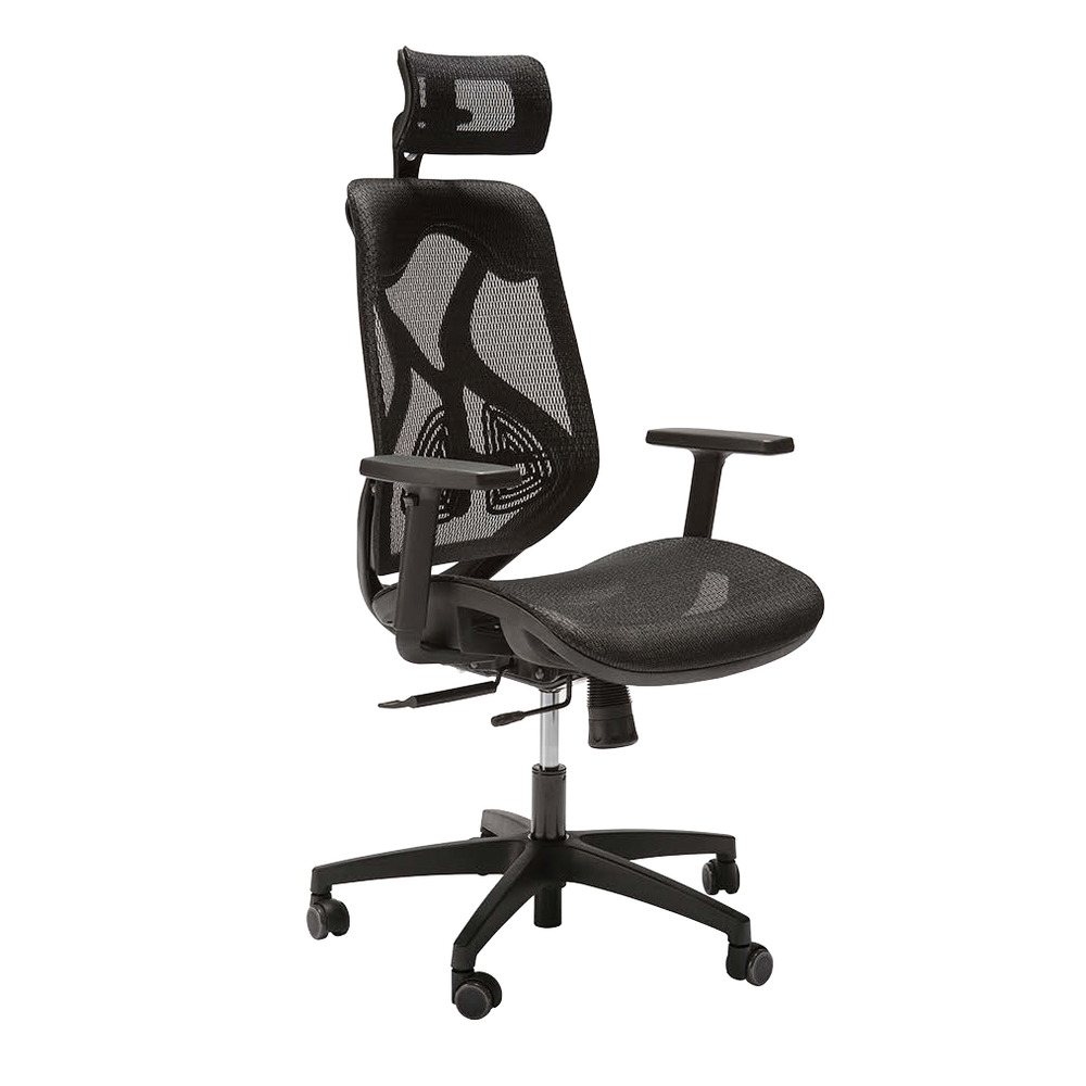 Poltrona semi-direzionale di MStyle ergonomica con sedile, schienale e poggiatesta totalmente in rete, con supporto lombare a fascia regolabile in altezza.