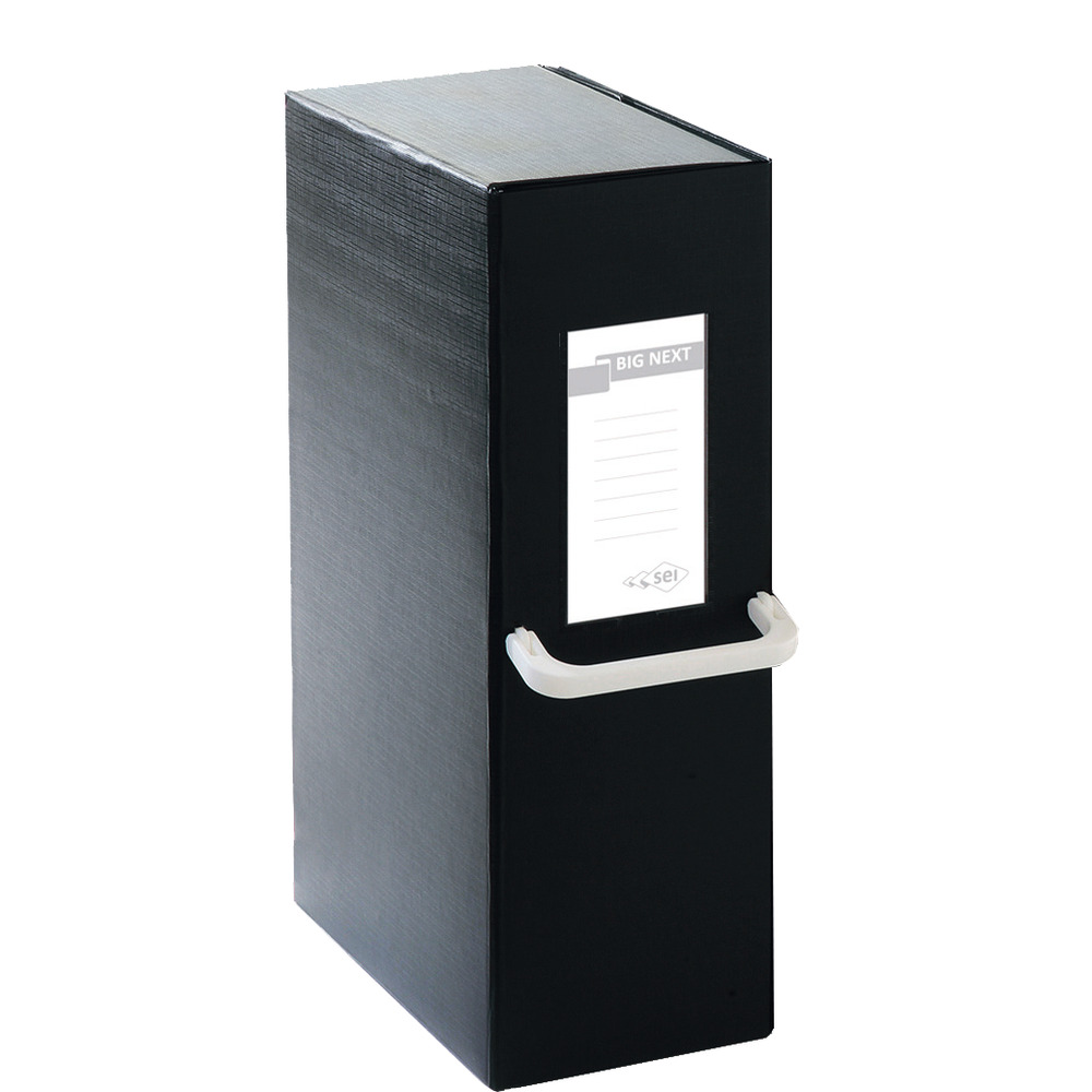 Scatole archivio BIG di Sei : cartelle in Colpan® (cartone rivestito in PVC) con chiusura a tre lembi.