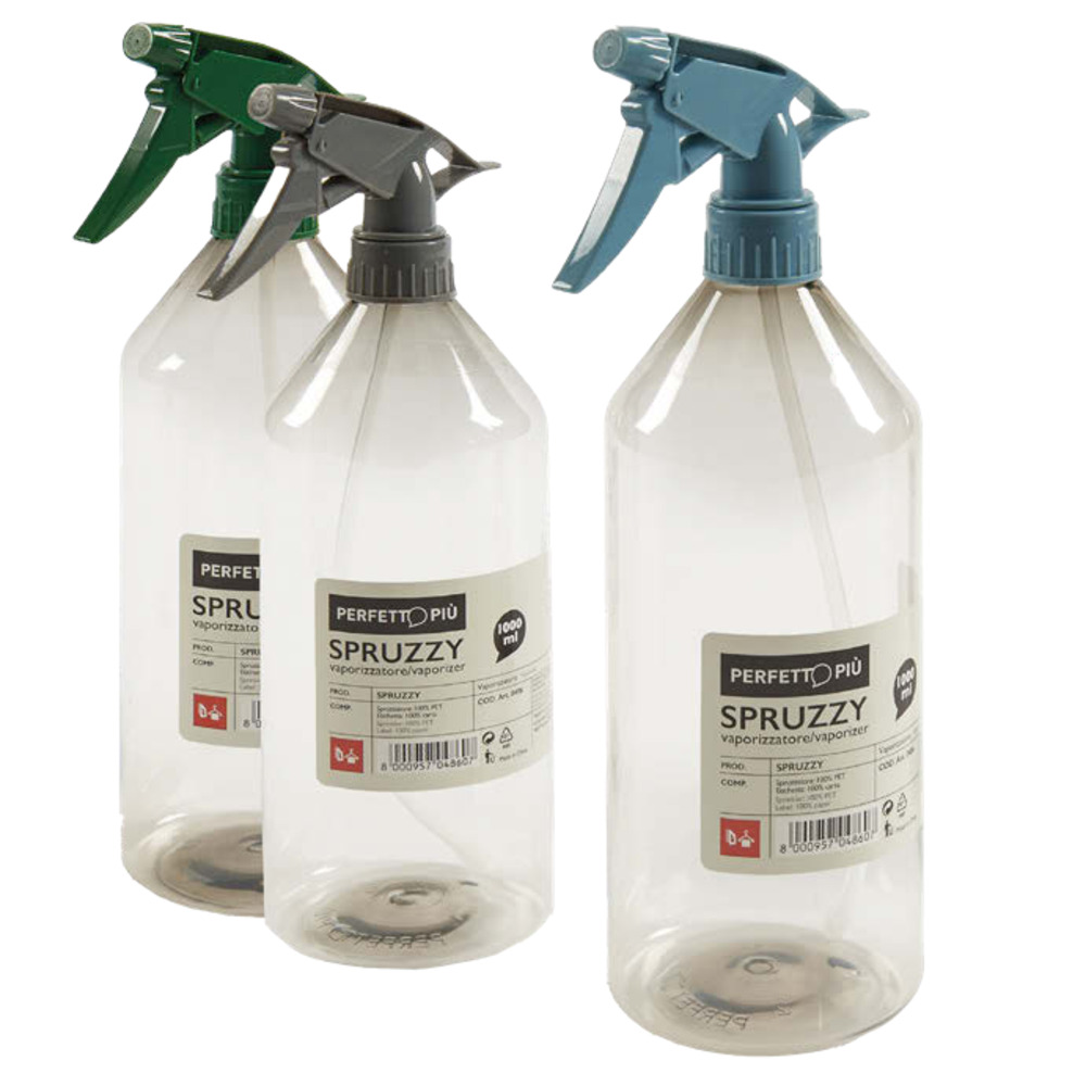Flacone vuoto in plastica trasparente con trigger nebulizzatore da 1 litro.