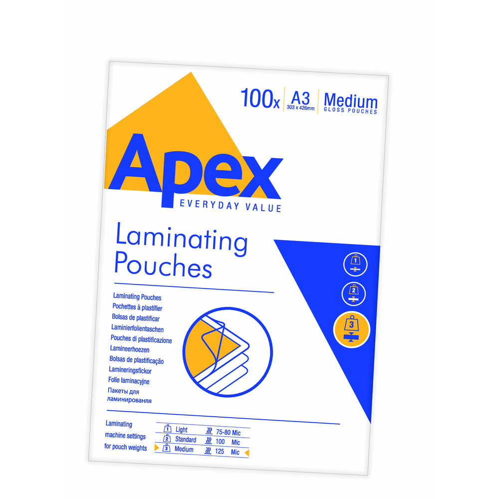 Fogli per plastificare lucidi, ideali per documenti e foto. Formato A3 (303x426 mm), confezione conveniente da 100 pezzi.