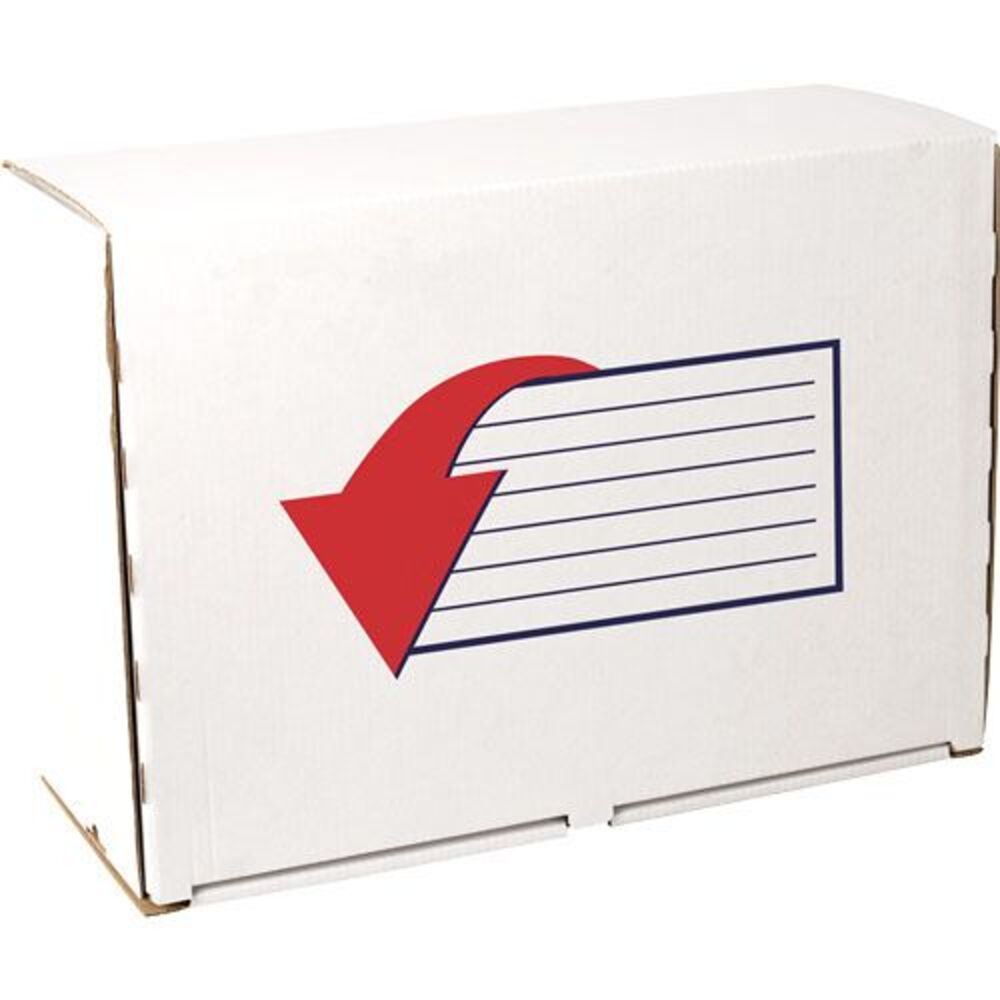 Prodotto in cartone resistente, chiusura con striscia autoadesiva e sistema di doppio sigillo.