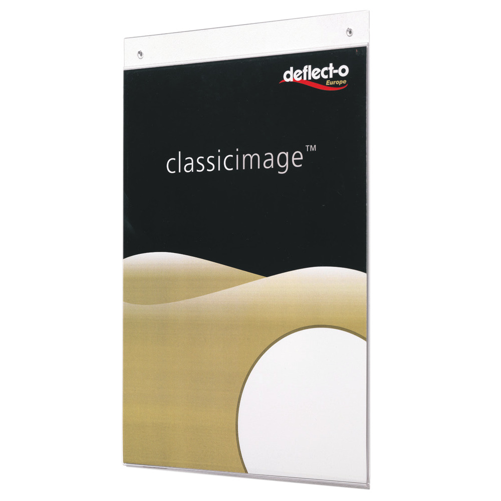Porta depliant da parete in acrilico trasparente. Formato A4 verticale, con spessore di 3 mm. Ideale per esporre materiale informativo in modo elegante e professionale.