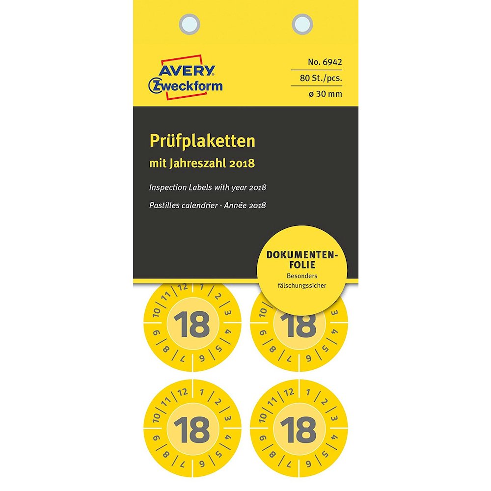 Art. 41730021 Bollini non rimovibili prestampati “2018” gialli Ø 30