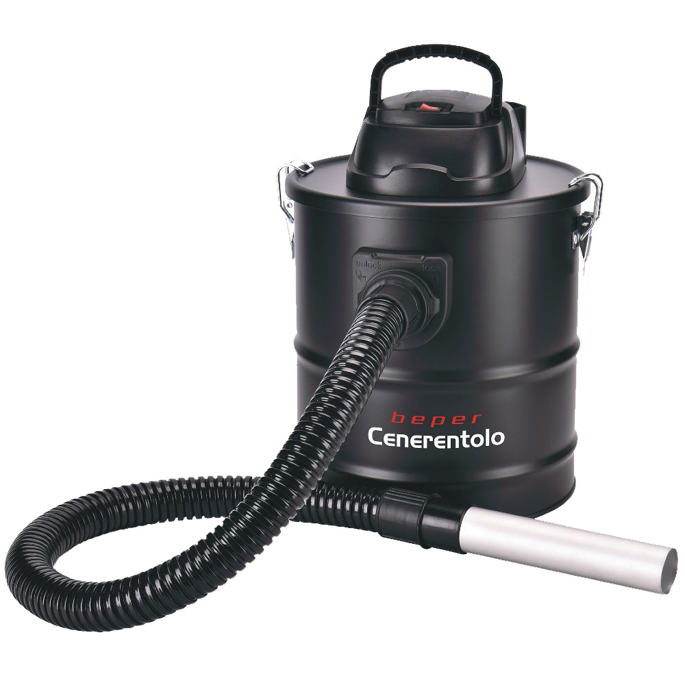 Bidone aspiracenere di beper con filtro hepa e tubo flessibile in ferro zincato Ø 30 mm, rivestimento in PVC di 110 cm.