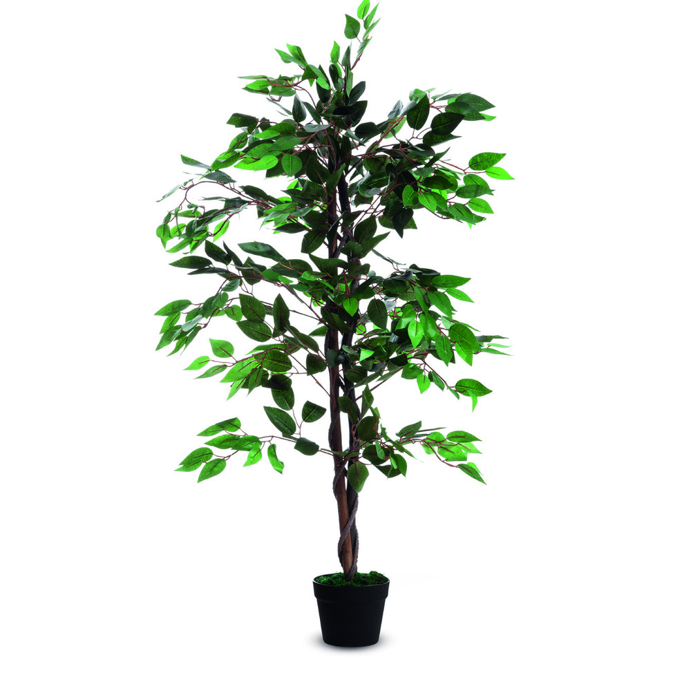 Pianta artificiale Ficus in poliestere con tronco in legno altezza 120 cm.