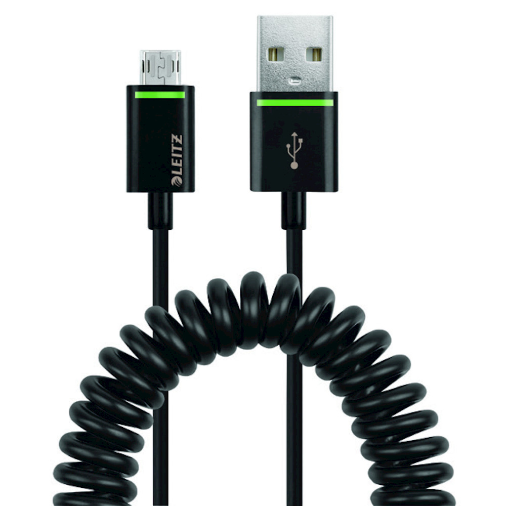 Cavo spiralato Micro USB reversibile (da Micro USB a USB-A) ad alta velocita` per sincronizzare e ricaricare i dispositivi mobili. Sincronizza fino a 480 Mbps e ricarica fino a 2.1A.