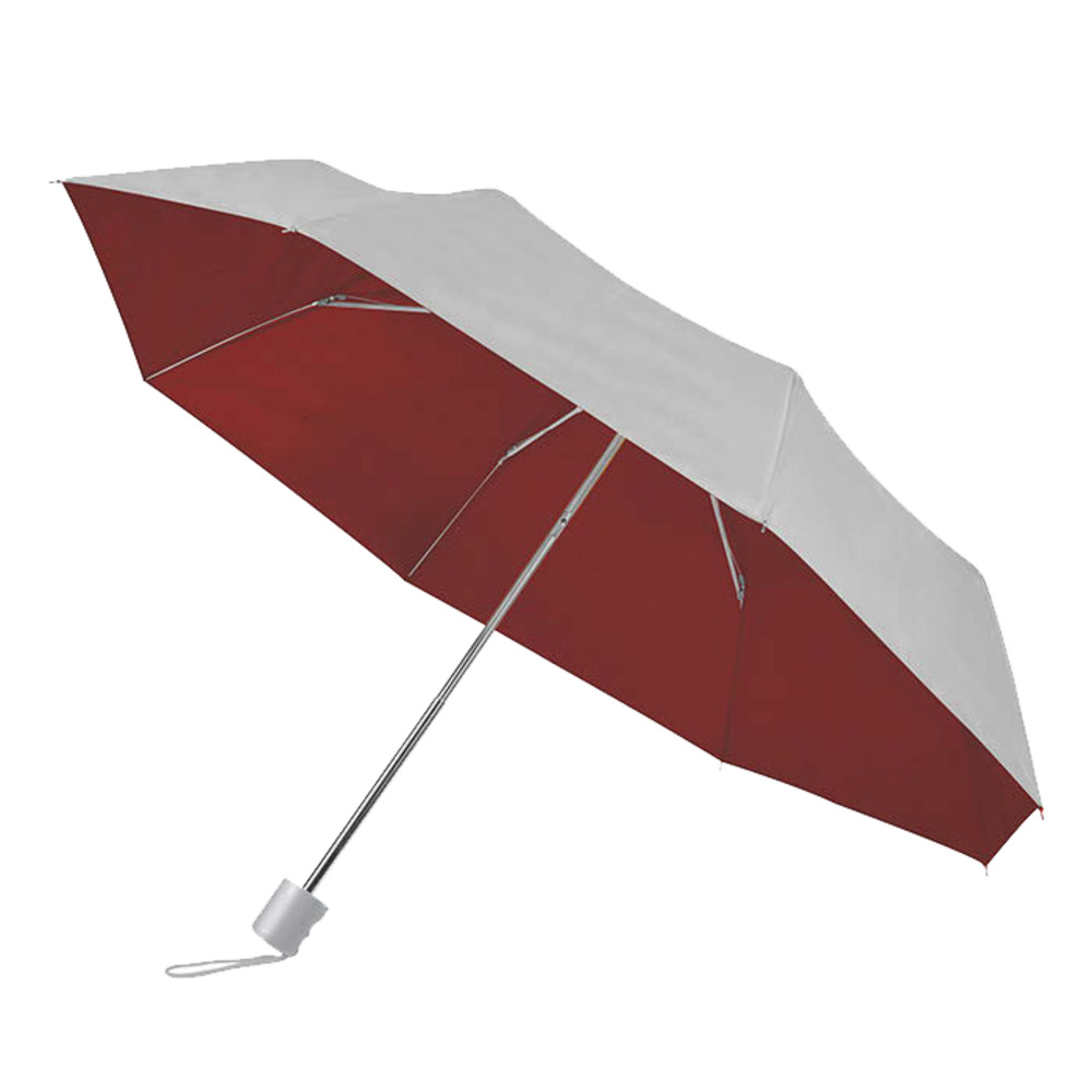 Mini ombrello manuale con fodero, nylon taffetà 170T, 3 sezioni e fusto in metallo.