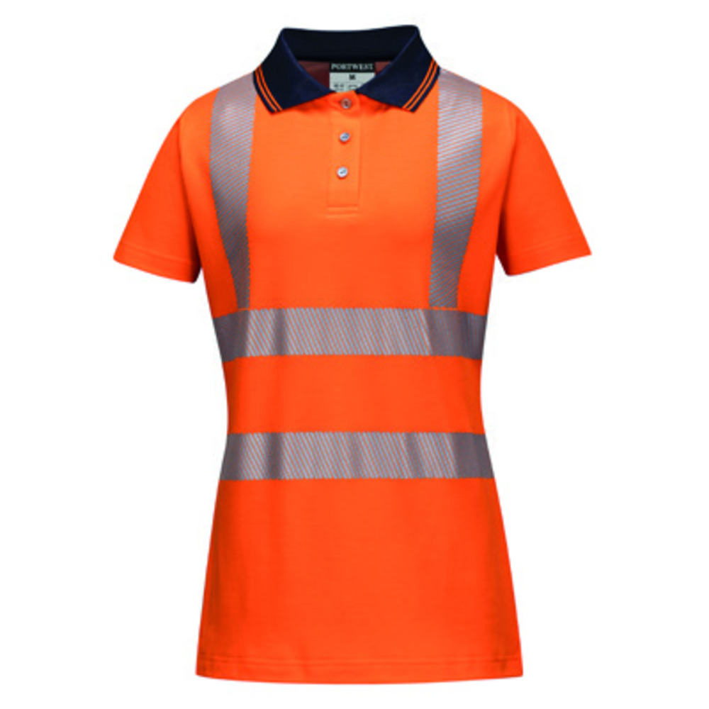 Polo da donna LW72 di Portwest combina il tessuto traspirante in cotone comfort e banda riflettente HiVisTex Pro.