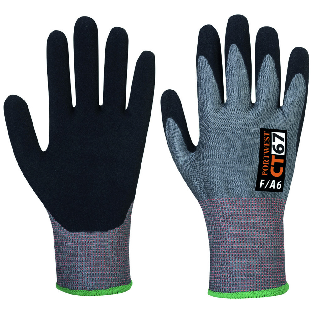I guanti CT67 offrono protezione di livello F al taglio, senza vetro o acciaio. La maglia calibro 13 assicura comfort e presa ottimale, anche da bagnato. Materiale DyUltra®.