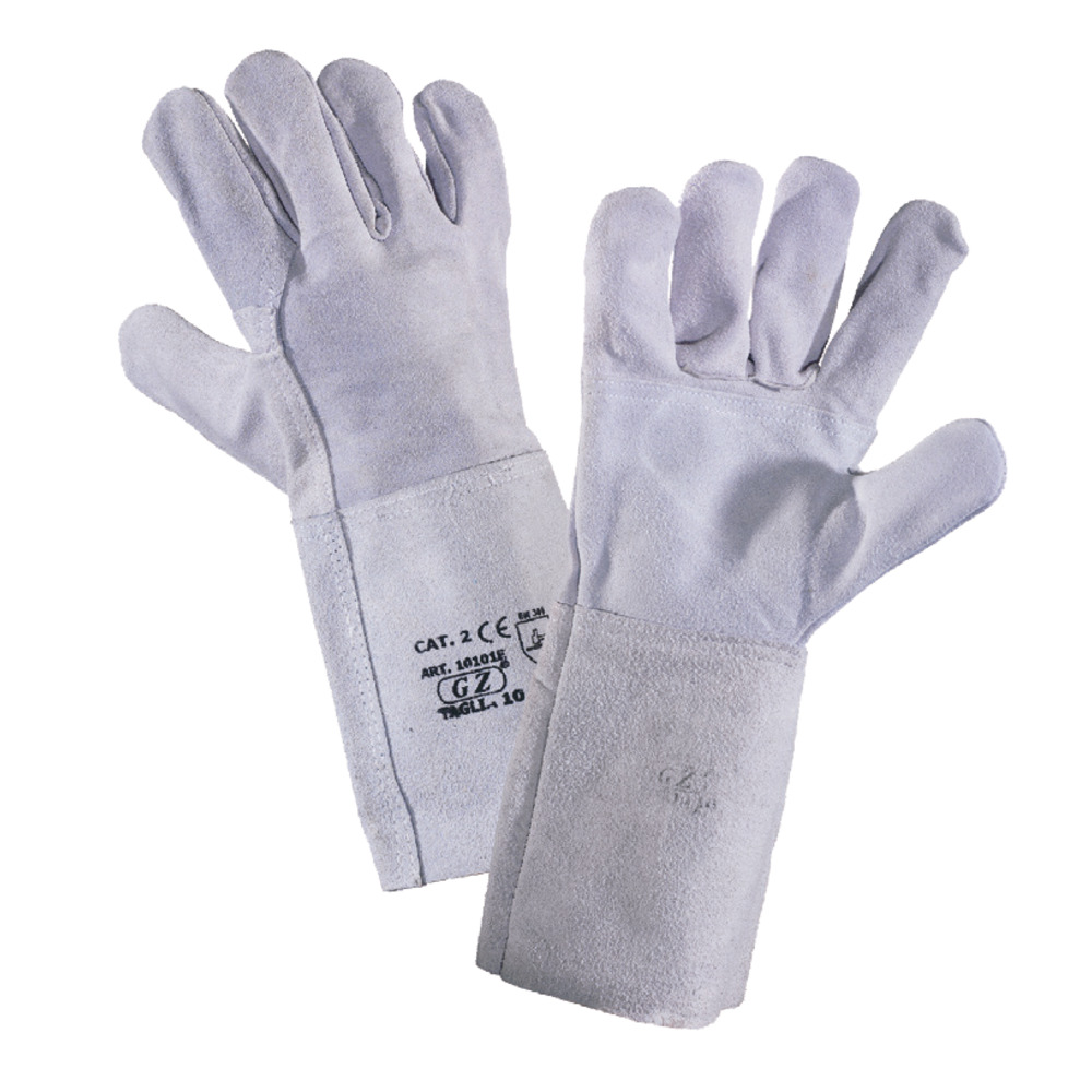 Guanti di GZ in crosta lungo10101 con manichetta da 15 cm con rinforzo sul palmo e pollice.