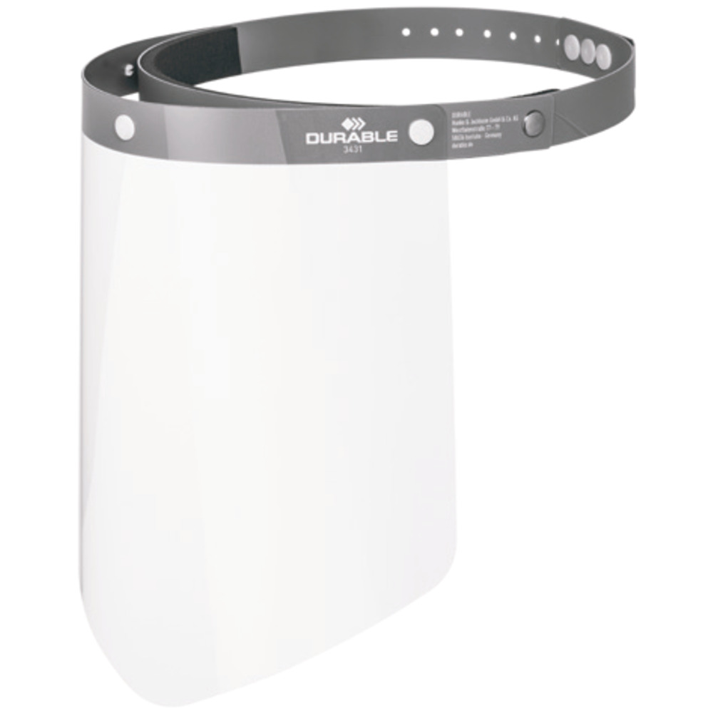 Copre perfettamente bocca, naso e occhi. Non impedisce i movimenti della testa. La visiera può essere sollevata, ideale per quando si lavora al computer. Si fissa tramite una chiusura a strappo, ideale per teste con circonferenza tra i 53-62 cm.