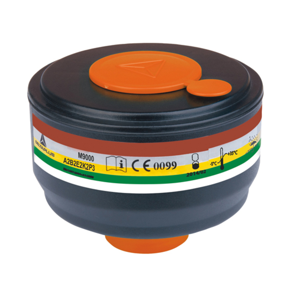 Scatola da 4 filtri A2B2E2K2P3 tipo EN148-1 per maschere complete M9200 e M9300.