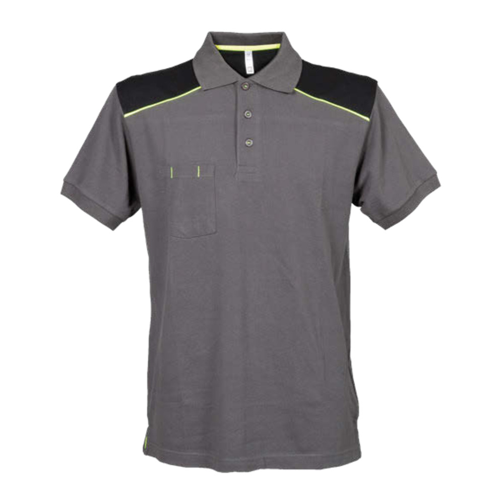 Polo JRC Bordeaux in cotone elasticizzato (95% cotone, 5% elasten). Dettagli giallo fluo: bottoni, rinforzi, piping e taschino con 3 scomparti. Grammatura di 200 gr.